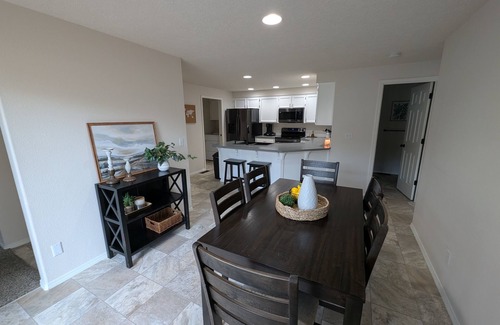 Relax in this beautifully furnished home, complete with everything you need for a comfortable stay. The cozy living room boasts vaulted ceilings and a gas fireplace, creating the perfect spot to unwind. With 2 bedrooms, each featuring a queen-sized bed, and the added convenience of an in-home washer and dryer. Situated in a safe and friendly neighborhood. Close to I-5, Keizer Station and Keizer Rapids Park, come and experience all that Salem and Keizer have to offer!