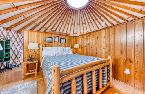Enjoy your own private space in this beautiful, large, 525 square foot yurt with luxury amenities! Located on the edge of large bay with 180 degree view, this Bay City vacation rental provides a truly unique Oregon Coast glamping experience!