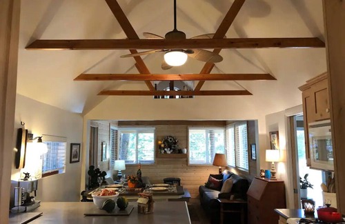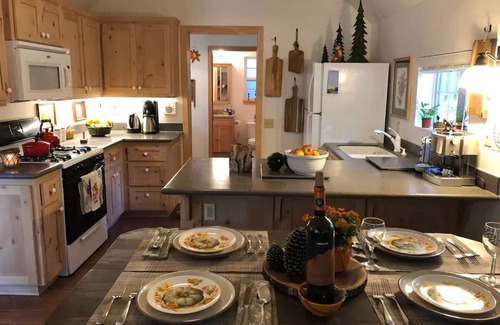 The Partridge nest is under a canopy of cedar, fir, and oak tees with windows all around. The space is light and airy with many nearby hiking trails. This cute cabin has been beautifully restored and includes all the conveniences of home. It has been described as sweet and cozy. This is the perfect romantic getaway, or fun quality time for a small family.