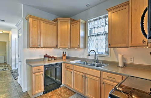 Arrive at your home-away-from-home and let the kids run off to play on the swing or shoot hoops while you unload the car and get settled in. Pour yourself a nice glass of wine and sit on the spacious porch to unwind while you watch the kiddos explore the yard.