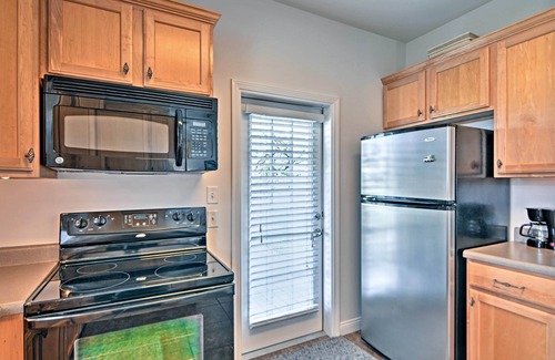 Inside, the space offers an inviting living room with plush leather furniture, french doors and a flat-screen cable TV equipped with Roku. Turn on some music and whip up tasty snacks and beverages in the fully equipped kitchen to set out on the coffee table or 4-person kitchen table.