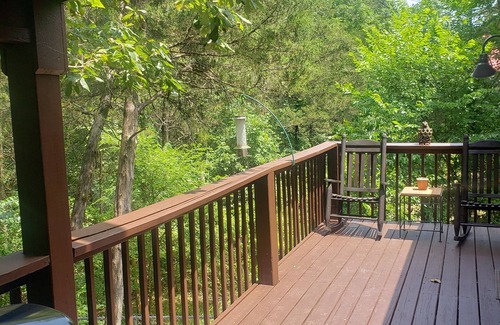 Beautiful peaceful cabin on lake, close to eureka springs, Roaring river and Branson! Sleeps four, has arcade games, massage chair a fire pit and grill for family time and memories with your loved ones ! Bring your kayaks or canoe and enjoy table rock lake!!♡♡