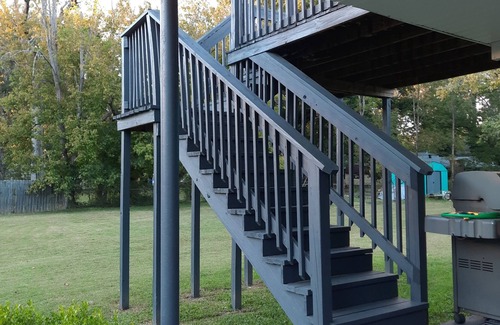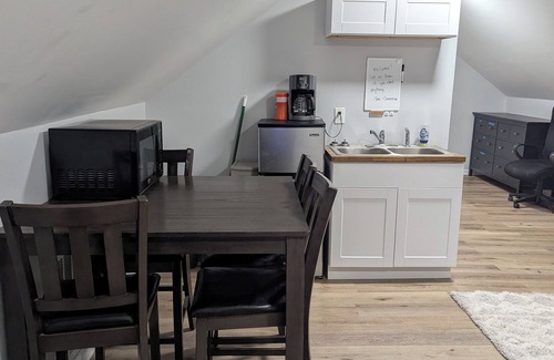 Located in Oak Ridge, this apartment is a dream. With a bedroom featuring a queen bed and a twin bed, guests can enjoy a soothing night's sleep. The bathroom is equipped with a shower and a hairdryer and basic soaps/shampoos for added convenience. In the living room, there's a cozy futon for relaxation. Our place will help you feel at home while you're traveling in Oak Ridge. A TV set up with a Roku for your entertainment and a kitchenette for use. Additionally, we keep Dunkin Donuts coffee stocked for your enjoyment. Private entrance to upstairs apartment loft.