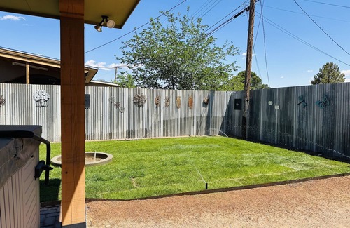 Casa de Flores 2 is a warm and cozy, good sized, pet friendly 3 bdrm, 2 bath house. Has a great outdoor living space with a covered, always working, heated hot tub. Ideal for short or long term stays. Fully stocked kitchen. High speed Internet. Water Softener. Great location!! Near hospitals, NMSU, Old Mesilla, mall, Downtown Main Street, several restaurants, grocery stores, local breweries and minutes away from highway access.
