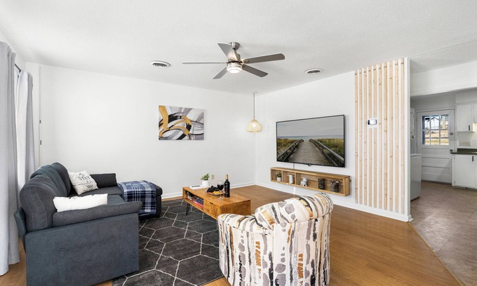 Welcome to our newly renovated modern retreat in the heart of Spartanburg, SC! This pet-friendly 2-bedroom, 1-bath home is equipped with modern amenities, including a washer and dryer, high-speed WiFi, laptop-friendly workspaces, and a fully stocked kitchen and bathroom essentials..