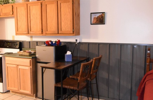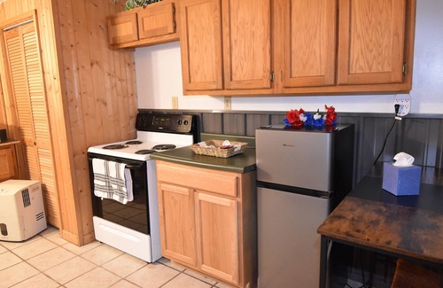 Enjoy meals in with a full kitchen and the added convenience of laundry in your unit. Whether you are traveling for work or play, this cabin has everything you need!