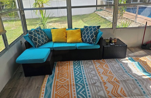 This cozy home has 2 bed/2bath, plus a sunroom, sleeps 5 guests (with Queen air mattress & leather reclining couch & chair) & relax by the nonheated pool. No pets, No smoking. Enjoy swimming, kayaking, eco-friendly adventures. Home has internet wifi, movie DVDs, board games and play music-albums on the old fashioned turn table. Enjoy Golf Course just 100 yards away & the clear water at Rainbow Springs - always 72 degrees. Rainbow Springs National Park is just 400 yards away from the house. Exterior security cameras on property
