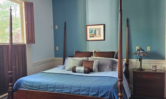 Stay comfortably in Statesville at this 1-bedroom 1 private full bathroom. This peaceful retreat in a 130yo historic home that offers essential amenities like a washing machine, dryer, AC, superfast WiFi, heat, and an iron with board.. The enchanting ambiance of the space makes it a wonderful choice for guests looking to unwind and relax. Feel free to reach out to us during your stay - we're happy to suggest local spots to check out.