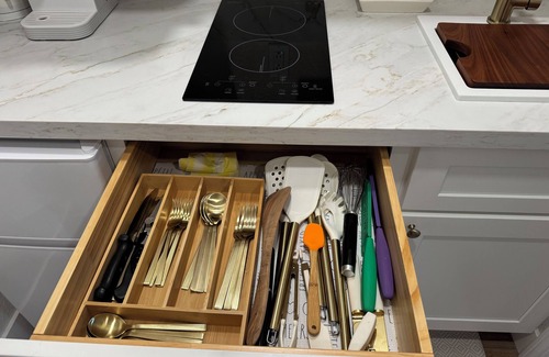 The Casita is equipped with high-end bedding, extra towels and blankets, an iron and ironing board, and toiletries.
