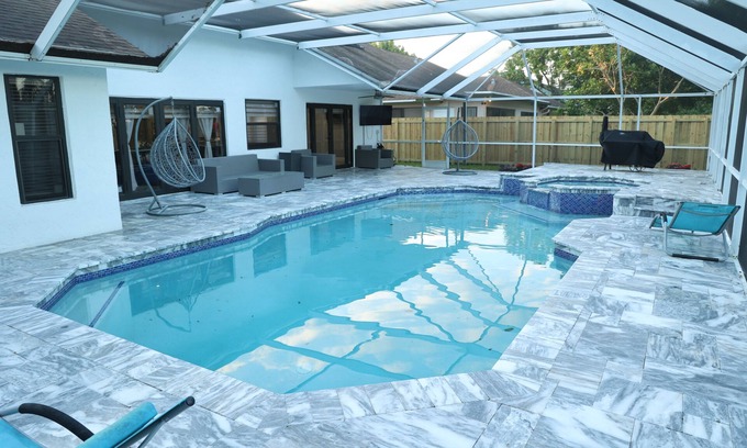 Large pool and Jacuzzi, Outside TV, BBQ Grill with patio furniture
