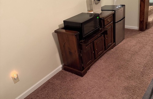 Your cozy getaway awaits in Blue Ridge Summit at this adorable efficiency private in law suite (no kitchen only mini fridge, microwave, kurig, toaster and assorted disposables for beverage). This charming space features 1 queen bed in the bedroom and a cozy living room with a king size sectional sofa for 2 extra guests. With amenities like AC, fireplace heating, and WiFi, your stay will be nothing short of phenomenal. The bathroom offers a refreshing shower to start your day off right. We hope you enjoy what our place and Blue Ridge Summit has to offer.
