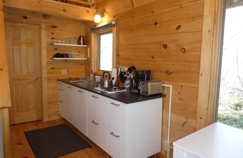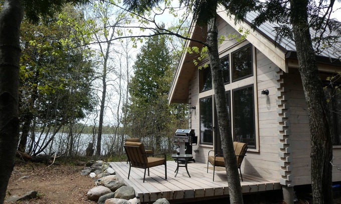 This cabin is nestled on a private island in the middle of Shagawa Lake in Ely, MN. from the dock or the sunset spot, you will enjoy expansive views of both sunrises and sunsets coupled with the sounds of waves lapping on the surrounding shores. You will enjoy the simplicity of nature just a short boat ride to downtown Ely and all its attractions. This comfortably furnished and modern cabin has one bedroom with a full bed and an upper loft with two twin beds. The kitchen includes a built in two burner cook top and a propane refrigerator. Equipped with fishing boat with motor, a canoe, a private dock, a gas grill, a state park fire pit, quiet generator or solar power, battery powered shower head and rainwater collection system. Drinking water, bathroom towels, kitchen towels, hot pads, linens, garbage bags and, toilet paper are provided. The cabin has an open format, with blackout curtains and blinds. There is no running water. The bathroom features a compost toilet, and there is a recently built outhouse.