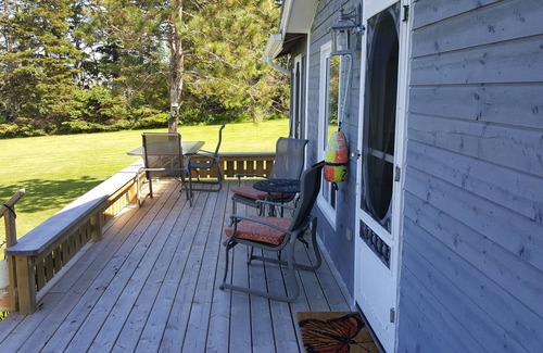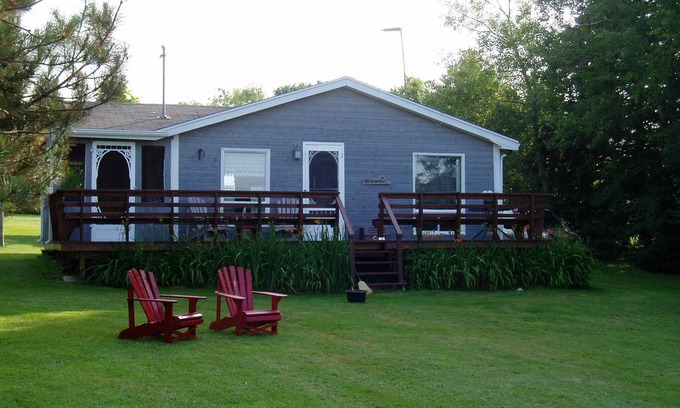 Located in Fortune, Prince Edward Island overlooking Bay Fortune, this cozy oceanfront cottage is a wonderful place to spend your summer holidays in Eastern PEI. Idle by the Bay has beach access, a large yard for children (over an acre) to play and is dog-friendly. If you are looking for a quiet cottage rental close to beaches and amenities, this is a great place to rent. Stunning views from either the deck or sunporch. Enjoy evenings around the firepit.