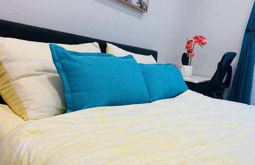 The room is fully furnished and tailored for your peace. There is a queen size bed with storage. You will sleep on a 12 inch super comfortable mattress. Free wifi, light kitchen use and laundry is provided.