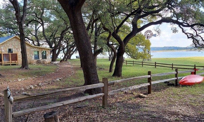 Casa de Esperanza is a stone cabin built on 9 acres in 1947 with the birth of Lake Travis. It was completely renovated in 2020. It is nestled under majestic live oaks with the prevailing wind blowing through their canopies; you'll notice no background freeway noise, only peace, quiet and privacy; deer/ bird watching; sterling sunsets, boat traffic along Lake Travis. **