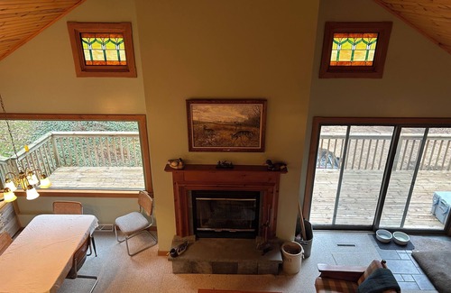 - Quaint cabin overlooking the creek below and wetlands in the valley basin.