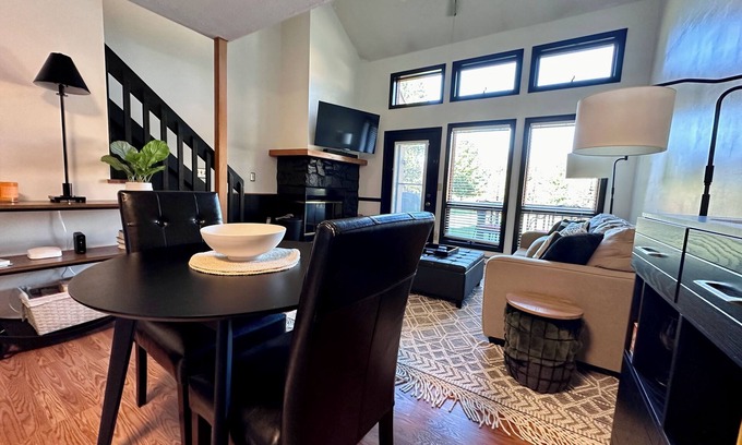 You will enjoy a fully equiped, cozy , 1 bedroom loft condo with a King Size bed, en-suite full bathroom upstairs and a 1/2 bath downstairs. We provide a fully stocked kitchen, coffee bar, wood burning fireplace, and deck with a grill. For additional sleeping needs there is a queen sleeper sofa.