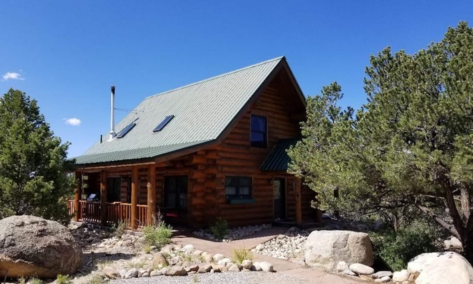 Get away from the business of your life in a newly furnished rustic log cabin. This cabin is surrounded by 2 acres of pinons for privacy yet has mountain views. Relax in comfort inside, or outside on the front and back covered patios. With wireless internet, this is a perfect place for a work vacation. It is located in the center of "God's Playground" with hiking, fishing, rafting, ATVing, bird watching, rock climbing, hunting, skiing, horseback riding, mountain biking, kayaking available close by. Only 10 minute drive from downtown Buena Vista....close but remote!