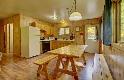 - Riverfront vacation home with a dock, wood stove, full kitchen, & firepit