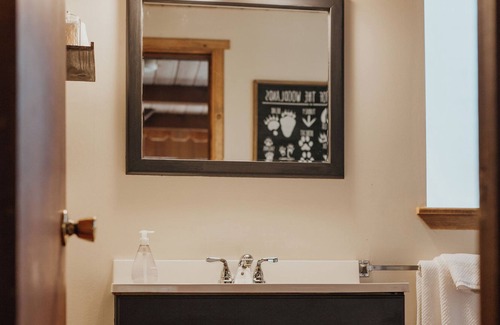 Ramshorn cabin is nestled between multiple large pine trees and has a covered patio with plenty of seating to enjoy a morning coffee or evening cocktail. Inside the downstairs bedroom is a queen sized bed and plenty of storage for personal belongings. It has a walk-in-shower, toilet and vanity sink in its bathroom downstairs. In the upstairs loft you will find four twin size beds . This cabin can fit 8 snugly!