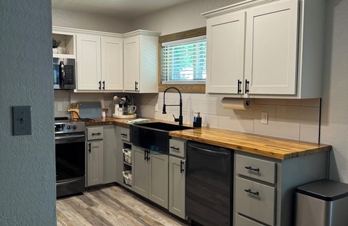 Kitchen: Keurig coffee maker(Pods Provided), standard coffee maker(Coffee Provided), dishwasher, microwave, dishware & flatware, refrigerator, spices, toaster, cooking basics, knife set