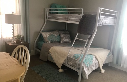 A beautiful, relaxing house with a full kitchen, dining area, living room, master bedroom with a queen bed, second bedroom with a double and single bunk.