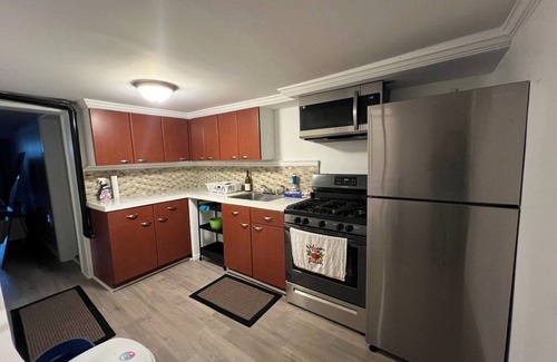 Welcome to our newly renovated basement unit, boasting two cozy bedrooms and private bathroom. With a separate entrance and access to our open shared backyard, enjoy privacy and relaxation in a quiet neighborhood. Equipped with stainless steel appliances, the kitchen is perfect for whipping up delicious meals. Centrally located we're just moments away from multiple shopping malls, and a quick 7-mile drive to the George Washington bridge. Experience comfort & convenience during your stay with us!