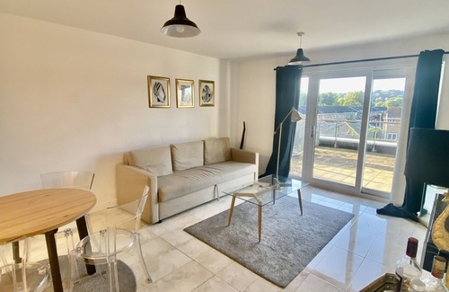 Luminous apartment, very peaceful and quiet where you will enjoy having long in bed mornings and have a drink on the countryside view terrace. The apartment decoration is French vibes inspired. 5 minutes away from the train station meet London City 30 mins further away