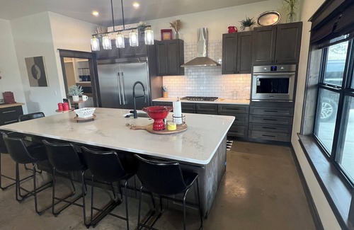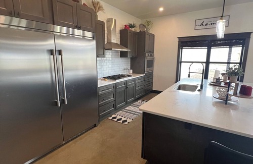 Welcome to Mountain Mimosa at Eagle Nest, New Mexico. The perfect location to get away and enjoy the views! Tons of outdoor activities to create lasting memories or relax inside and enjoy the newly built custom home. You will love all the personal touches in this home to make you feel cozy and right at home! The open floor plan gives ample space for families to cook, relax, enjoy the retreat! The house has 3 spacious bedrooms with extra sleeping room availability with an oversized sectional couch. The chef's kitchen is fully loaded with everything you could need to cook for a crowd. The refrigerator and freezer are both oversized commercial grade and go ahead and take note of the wine cooler set up by the mimosa and coffee bar for extra storage. The oversized pantry is especially handy for longer stays or larger groups. The built in ice maker is a bonus to end your day with a nice beverage. You will have access to all kitchen appliances to include crock pots, air fryers, Keurig, hand mixer, bread maker, waffle iron, roasting pans, etc. The house boasts so much charm to relax and rejuvenate, but the views are incredible!