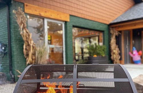 Fenced in, Fire pit, huge deck, hot tub, kids play area/sand box, dining table, casual sitting area (covered), lounge chairs, gas grill/heaters (propane tank refills not included).