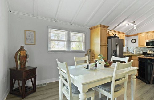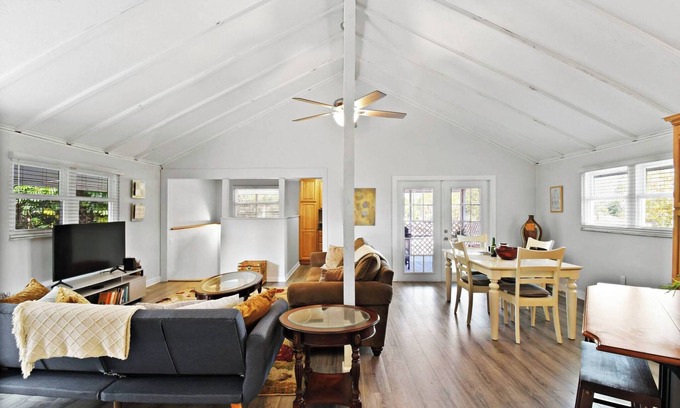 Although located off the main road in Babson Park, the home has been upgraded with $40,000 in noise-canceling storm windows for a peaceful stay. Each room is equipped with blackout blinds, ceiling fans, and convenient power outlets for all your devices.