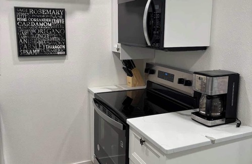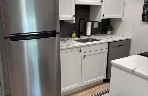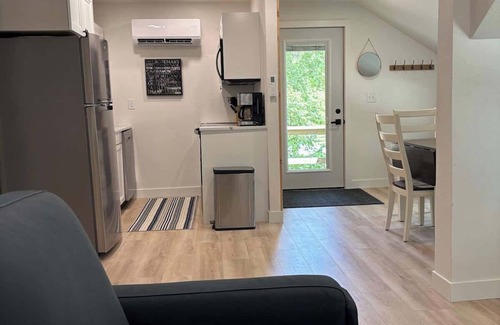 The home features a comfortable queen bedroom and a sleeper sofa with a queen pullout in the living area. You'll also enjoy a full kitchen, in-unit laundry and mini splits for efficient heating and cooling. The unit sits on the second floor of a duplex with private access.