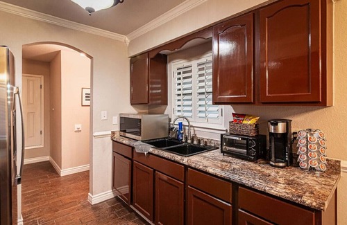 Beyond the comfort of your home, the strategic location in the heart of El Paso unfolds a world of convenience. Proximity to dining, shopping, and entertainment options, as well as essential services like urgent care and hospitals, adds unparalleled convenience to your stay. Quick access to the I-10 facilitates seamless travel, while the top attractions and restaurants nearby promise a delightful exploration of El Paso's vibrant offerings. And when you step outside to your private backyard with a patio and outdoor furniture, you're greeted with a serene space to enjoy the beautiful sunsets, adding a touch of tranquility to your Texan retreat.