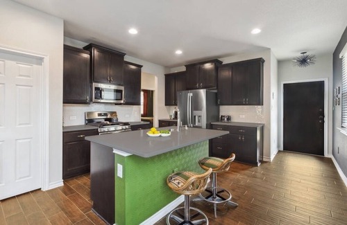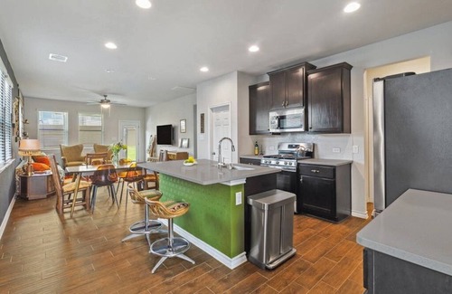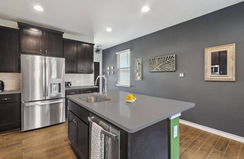 In this beautiful house in Buda, you can easily reach lively South Congress Avenue by car within 16 minutes and peaceful Lady Bird Lake in about 17 minutes. Soak in the hot tub, connect to the high-speed WiFi, and enjoy the convenience of the in-unit washer and dryer. Cook up a storm in the fully stocked kitchen, complete with a stove, oven, refrigerator, grill, and all the appliances and utensils you need. Unwind in the evenings with a movie on the smart TV. With 2 bathrooms, towels, basic toiletries, and an iron and board, you'll have all the essentials covered. Stay comfortable year-round with the air conditioning and heating. Secure parking is available on-site, making it easy to explore the nearby Circuit of the Americas, just an 18-minute drive away. Immerse yourself in the local charm and create unforgettable memories during your stay in our inviting Buda vacation home.