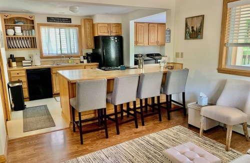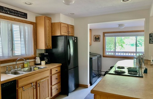 The home consists of an upper and lower unit, this is for the lower unit only, Guest will have sole access to the lower level of the home with its own entrance and parking, the lower unit doesn't share any walls with the upstairs. Only shared space would be the backyard along the water in the yard. The yard does have two fire pits. Firewood provided for your convenience.