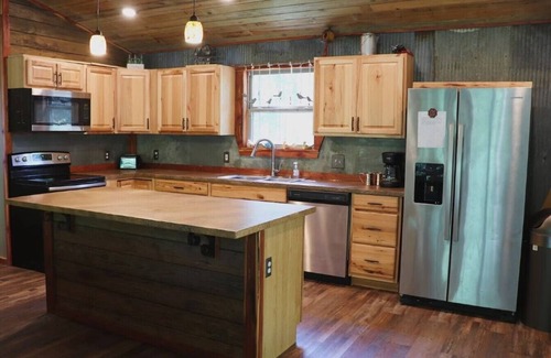 Our cabin is a modern rural get-away from the hustle and bustle of everyday life! It has all the comforts of home with the exception of Wifi and Television. Instead, the living area faces a wall of windows that showcases the beauty of the outdoors. You can enjoy watching the wildlife from the comfort of the cabin.