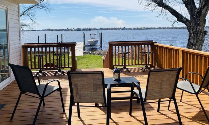 Guests are more than welcome to enjoy the dock! There are gray, plastic Adirondack chairs located next to the back deck steps that can be taken onto the dock. Please do not leave them unattended, as the wind has a tendency to blow things into the water. The boat lift pictured is not available for guest use and a boat (also not for guest use) will be present on the lift during most stays as will a sailboat in the wet slip. Please do not board the boats. There is currently no ladder into or out of the river.