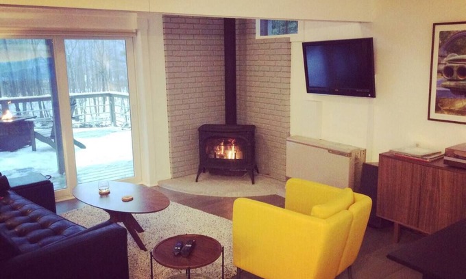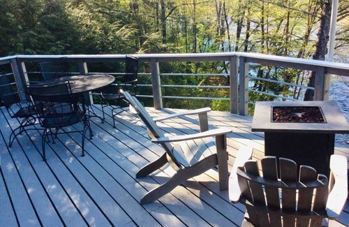 Surrounded by tall pines and mountains, with the tranquil sound of the West River outside, here you can escape into nature while still enjoying all the cozy comforts of home. Our newly renovated home has been transformed into a getaway spot for romance, friends or family. The deck, set on the waterfront, is a beautiful, serene space to dine or take a soak in our wood burning hot tub. Put on some records, make a meal and cuddle up in front of the fire after a long day of playing outdoors.