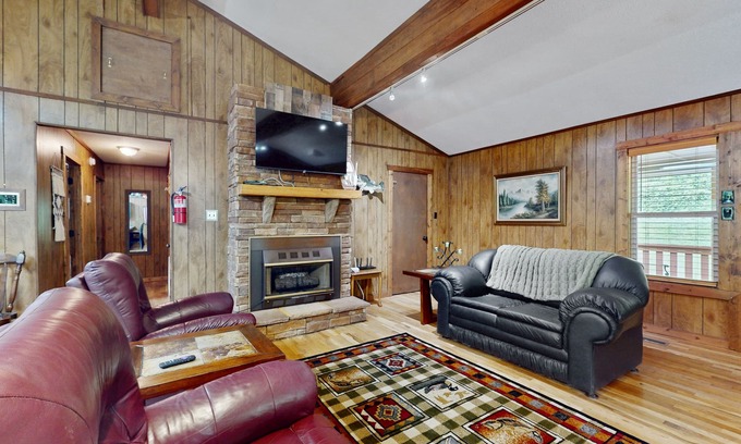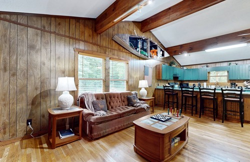 This dog-friendly retreat is designed for comfort and convenience, offering amenities such as central AC, a gas fireplace, and a variety of board games for family fun. With six river floats and life jackets provided, you’ll have everything you need for a memorable outdoor experience.
