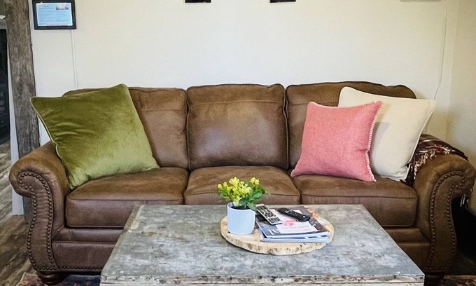 Your stay at the Cozy Riverside Cabin is enhanced by thoughtfully curated amenities designed for comfort and relaxation. Enjoy the fully stocked kitchen ideal for preparing delicious meals, or unwind with a drink from the beverage bar after a day of festivities. With a newly renovated space featuring Smart TVs, high-speed internet, laundry facilities, and intimate outdoor spaces like a firepit and patio, you will find everything you need to create lasting memories. For added luxury, take advantage of on-site massage services provided by local professionals, ensuring your wedding preparations are stress-free.