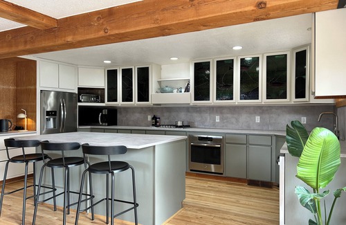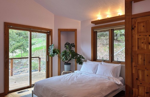 Our serene house boasts a spacious wraparound deck with panoramic views of the majestic river and lush forests. Unwind with loved ones in our airy kitchen, living, and dining spaces, offering stunning views and a selection of board games & cookbooks — perfect for sharing laughs over a glass of wine. Or, embark on countless adventures awaiting in the surrounding area!