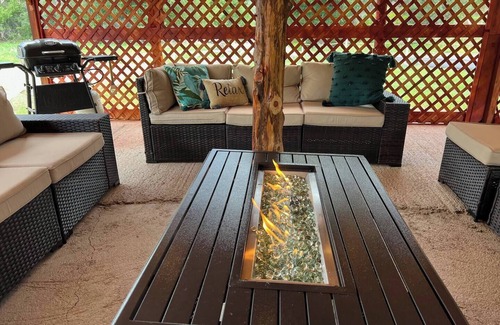 The Cozy Room at Lake Roberts offers a variety of amenities to ensure your stay is comfortable and enjoyable. Each room comes equipped with a King size bed, mini-fridge, microwave, coffee maker, and a bathroom with a tub/shower, providing all the essentials for relaxation after a day of wedding festivities. You will also have shared access to the grilling and social pavilion, featuring sectional sofas around a fire pit—ideal for romantic evenings under the stars with loved ones. While meals can be prepared in the communal space, please note that the room does not feature a full kitchen, but it does provide a dining area for enjoying meals or working on wedding plans.