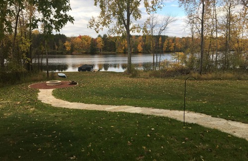 This cozy river cabin offers scenery, nature and relaxation at its finest. Nestled into a secluded location on the Menominee River, everything slows down as you listen to the bubbling river running just outside your lodge. Enjoy a fire around the large brick fire pit on the riverside patio - or stay inside to drink your coffee while you watch the river through the giant bay window. The property bolsters an expansive roaming 2 acre field where this plenty of room for games. And while you may FEEL like you are totally isolated from the busy world - the cabin is located only 3 miles from town where there are shops, a wide array of restaurants, gas stations, and a grocery store. The cabin boasts 2 cozy bedrooms and 1 loft including a king bed. With heat, WiFi, and a washing machine available, guests can enjoy a pleasant stay. Experience some of the most beautiful scenery that Menominee has to offer with a stay at our charming cabin.