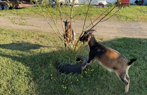Located on a working micro ranch, you may be see our two goats, Waylon and Willie. Or one of our horses.