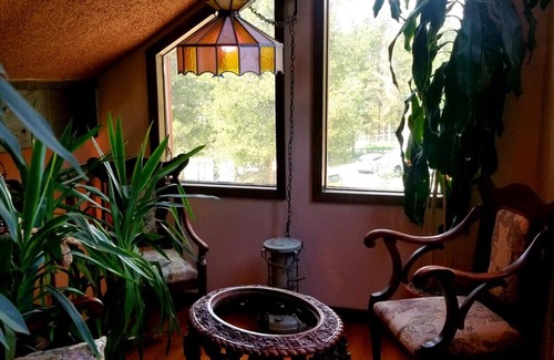 Take it easy at this unique and tranquil getaway. Open vaulted ceiling in loft bedroom and living room. Open kitchen and dinning room. One bathroom on each level. Property manager may or may not be on premise in separate living area.