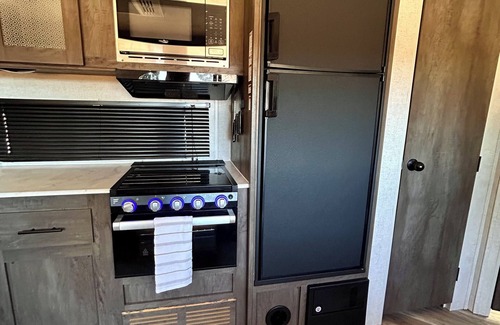The trailer is on a private lot with our main house nearby—you’ll have your own space but may see us occasionally.