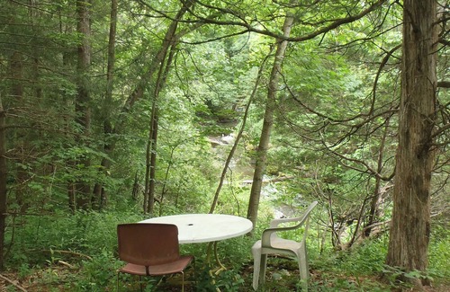 Nestled in Hector, this delightful recreational vehicle offers a private getaway as amazing as it is serene, and the people who've stayed there long term have been happy with it. But as with anything else, there are pros and cons. CONS - First, the RV is "cozy" because it's only an 18-ft. unit. And second, it RV was built in 1986. It's an old unit, and it's got its creeks and groans (not literally). You have to take care of it, but it always comes through - think of the African Queen or R2D2! PROS - First, it's cheap. The price includes everything, including heat, electricity, water, wifi, parking, and garbage pick-up. Second, it's centrally located in "downtown" Hector. Wineries are in walking distance, a convenience store is a five-minute walk, and the Finger Lakes National Forest is less than four miles away. Third, and most important, the RV sits on a property with its own private gorge (see photos), where you can go to meditate, sip wine or otherwise commune with nature. You won't find a private spot like this at resorts costing many times more, if you can find one at all.