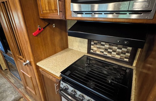 Laundry is in the home next to the RV and may be requested for access as needed and I will try and make it available. The large grass area outside adds the feeling of roomy and spacey not like an RV park or crammed living scenario. It is also pretty private from the other neighborhood homes. Tinted windows add for privacy but beautifully let in natural light.