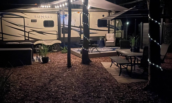 Experience Porter like a local in this delightful 1-bedroom recreational vehicle. The cozy space features 1 queen bed and 1 sofa bed, perfect for a small group of guests. With amenities like WiFi, heating& AC, outdoor kitchen/ grill area, hammock, kids tree swing set, fire pit area , outdoor dining area also outdoor tv area with additional tv inside .The clawfoot tub allows for a nice soak in nature , you'll feel right at home. The 1 full bathroom comes equipped with a hair dryer, shower, and bathtub for your convenience. Smoking is permitted outside Thank you . Enjoy all that Porter has to offer when you stay at our place.
