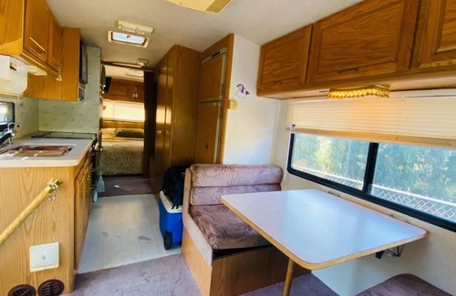 This amazing Cozy Home-on-wheels (recreational vehicle) in Rialto, Ca is a peaceful retreat for guests. The cozy bedroom features a comfortable queen bed, with a memory foam matress, perfect for a good night's sleep and a TV to relax in bed and watch your favorite show. The bathroom includes a bathtub, handheld showerhead and a hair dryer for added convenience. In the additional living space, there's a dining area that converts into an extra twin bed for more sleeping options. This makes it a great vacation rental for either 3 adults or two adults and 1-2 kids. With amenities like AC, heating, and WiFi, guests will feel right at home.There is also a second TV located at the front of the RV great to watch from the dining table/daybed. Also feel free to enjoy the porch just outside the RV where you'll find an outdoor couch with cushions and a rug and enjoy free parking in front of the house.
